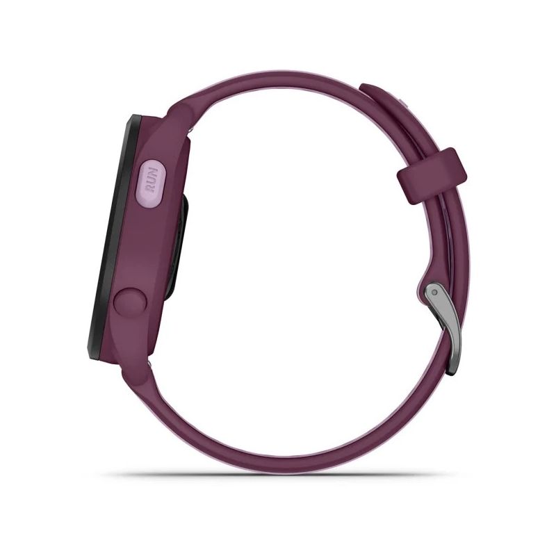 Ten wygodny w użyciu smartwatch Garmin Forerunner 165 music fioletowy GPS do biegania ma niezbędne funkcje, których potrzebujesz, by przejść na kolejny poziom zaawansowania w bieganiu — w tym GPS, monitorowanie tempa i dystansu oraz nadgarstkowy pomiar tętna1.
