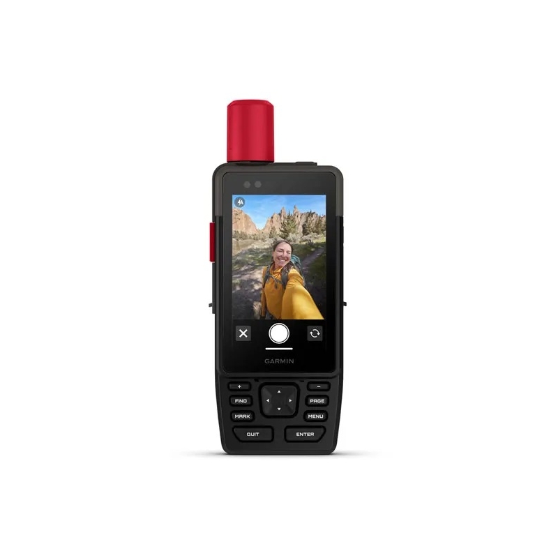 Zintegrowane aparaty z przodu i z tyłu umożliwiają robienie selfie i zdjęć z podróży. Dzięki aktywnej subskrypcji inReach1 można udostępniać zdjęcia w czasie rzeczywistym nawet przy braku zasięgu sieci komórkowej.
