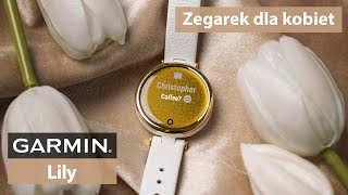 Garmin Lily - kremowo złota ramka z czarną kopertą i paskiem z włoskiej skóry, to oryginalny smartwatch stworzony z myślą o kobietach. Kompaktowe wymiary zegarka, liczne opcje typu smart i przede wszystkim unikatowe wzornictwo, to najważniejsze cechy, które będą wyróżniać jego użytkowniczki. Zegarek Garmin Lily o numerze producenta 010-02384-B1, to dotykowy wyświetlacz operujący w skali szarości na stałej beżowej tarczy, co pozwala zachować smartwatchowi wyjątkową elegancję.