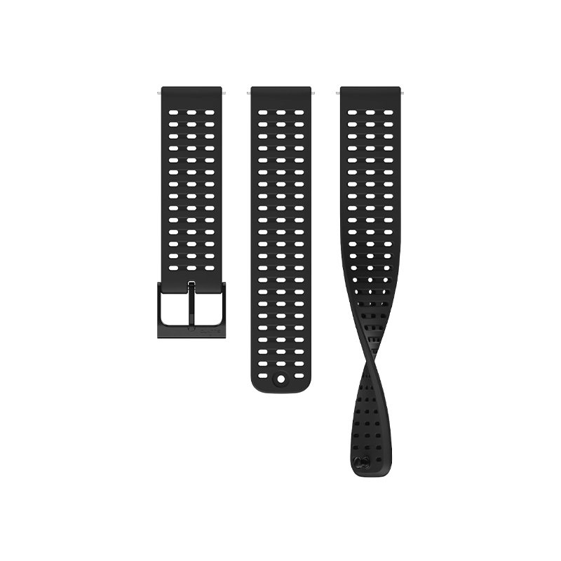 Wykonany z wytrzymałego silikonu pasek z mechanizmem szybkiego odpinania jest wygodny w noszeniu i łatwy do wymiany. Ten pasek oferuje przewiewną konstrukcję i nie podrażnia skóry, co czyni go idealnym do sportów o wysokiej intensywności, takich jak bieganie i trening na siłowni. Zestaw zawiera dwie długości pasków.