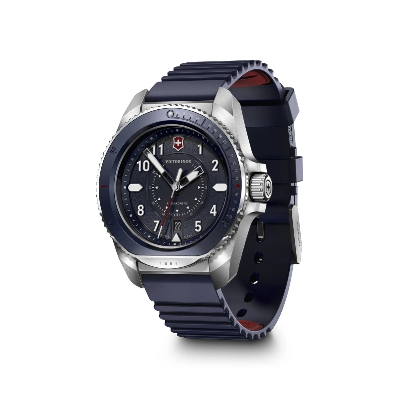 Przewodnicy górscy jak mało kto wiedzą, jak ważne jest odbieranie sygnałów z otaczającego świata natury. Reagują na zmiany terenu i pogody, identyfikując problemy, zanim się pojawią. Niebieski zegarek Victorinox Journey 1884 z mechanizmem kwarcowym ucieleśnia tego pionierskiego ducha. Jego ochrona antymagnetyczna zapewnia osłonę mechanizmu przed szkodliwym wpływem urządzeń elektronicznych, które ograniczają precyzję działania. Niebieski Victorinox Journey 1884 jest też odporny na wstrząsy i wyposażony w kauczukowy pasek wysokiej jakości gwarantujący komfort noszenia i szerokie możliwości stylizacyjne. Takie połączenie zalet czyni z modelu Journey 1884 idealnego towarzysza w każdej sytuacji.